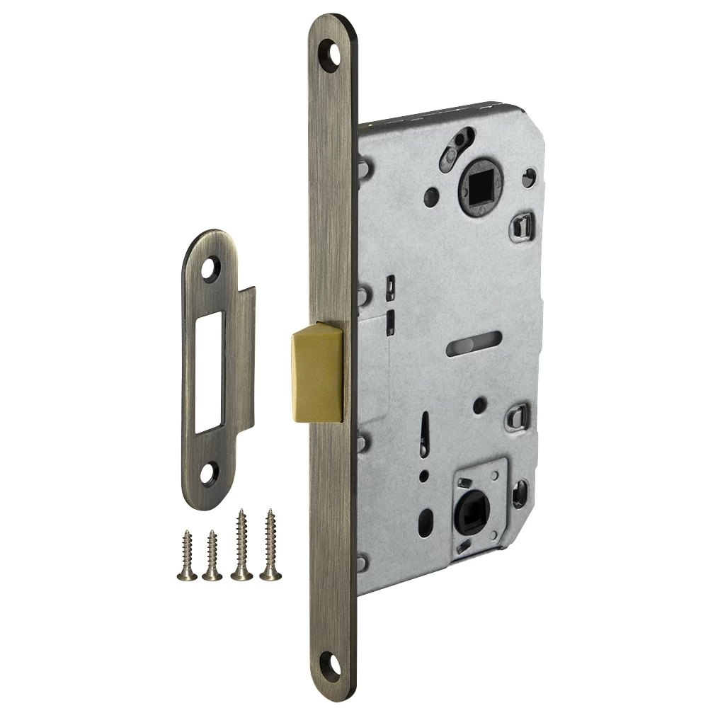Дверная защелка с пластиковым механизмом AJAX LP96WC-50 предназначена для установки в деревянные межкомнатные и сантехнические двери. Легкая смена направления язычка защелки, подходит для дверей левого и правого открывания. Корпус выполнен из стали. Размер бэксета - 50 мм. Размер межосевого расстояния - 96 мм. Цвет: бронза. В комплектацию входят: ответная планка и крепежная фурнитура в цвет изделия.