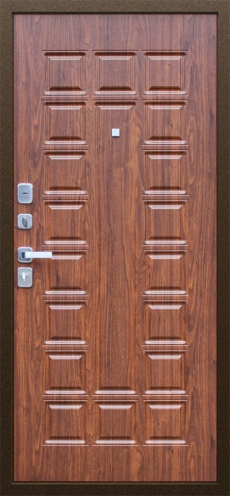 Надежная входная Дверь Спартак Орех темный премиум класса по цене 34 727 руб. Большая толщина стали защитит от проникновения в ваш дом, квартиру или коттедж. Используется очень качественная фурнитура: замки, цилиндры, ручки, защелки. Покрытие и отделка двери изготовлено под внимательным контролем производителя. Дверь имеет долгий срок службы и гарантию.