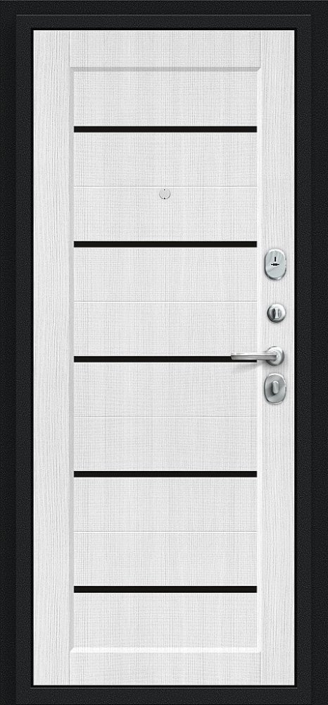 Надежная входная Дверь Браво Борн Букле черное/Snow Melinga премиум класса по цене 30 127 руб. Большая толщина стали защитит от проникновения в ваш дом, квартиру или коттедж. Используется очень качественная фурнитура: замки, цилиндры, ручки, защелки. Покрытие и отделка двери изготовлено под внимательным контролем производителя. Дверь имеет долгий срок службы и гарантию.