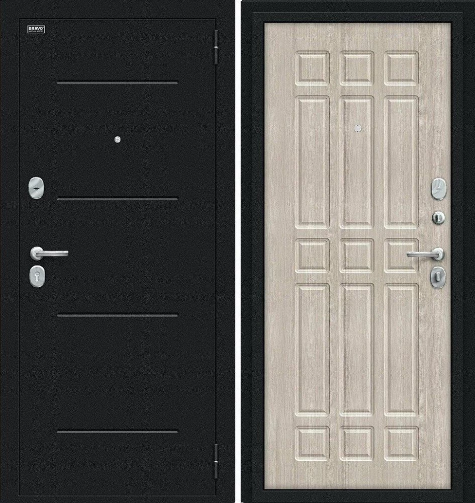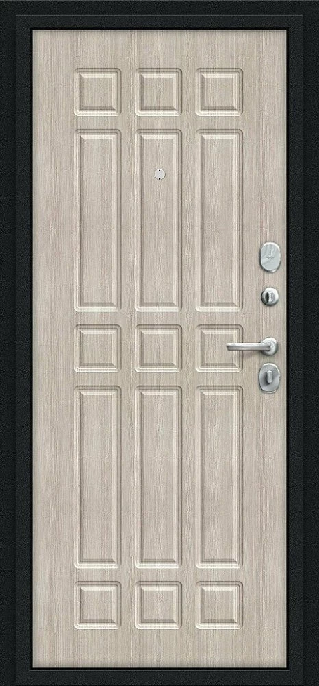Надежная входная Дверь Браво Мило Букле черное/Cappuccino Veralinga премиум класса по цене 30 277 руб. Большая толщина стали защитит от проникновения в ваш дом, квартиру или коттедж. Используется очень качественная фурнитура: замки, цилиндры, ручки, защелки. Покрытие и отделка двери изготовлено под внимательным контролем производителя. Дверь имеет долгий срок службы и гарантию.