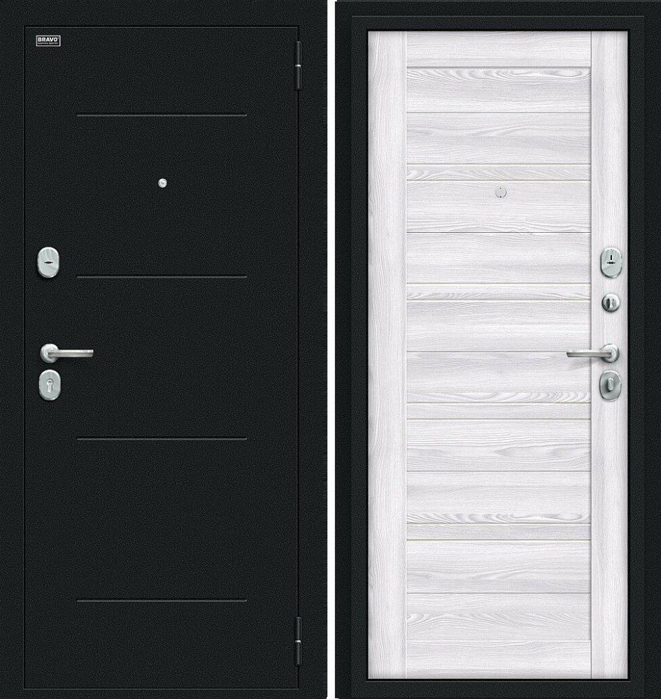 Надежная входная Дверь Браво Сити Kale Букле черное/Riviera Ice премиум класса по цене 36 027 руб. Большая толщина стали защитит от проникновения в ваш дом, квартиру или коттедж. Используется очень качественная фурнитура: замки, цилиндры, ручки, защелки. Покрытие и отделка двери изготовлено под внимательным контролем производителя. Дверь имеет долгий срок службы и гарантию.