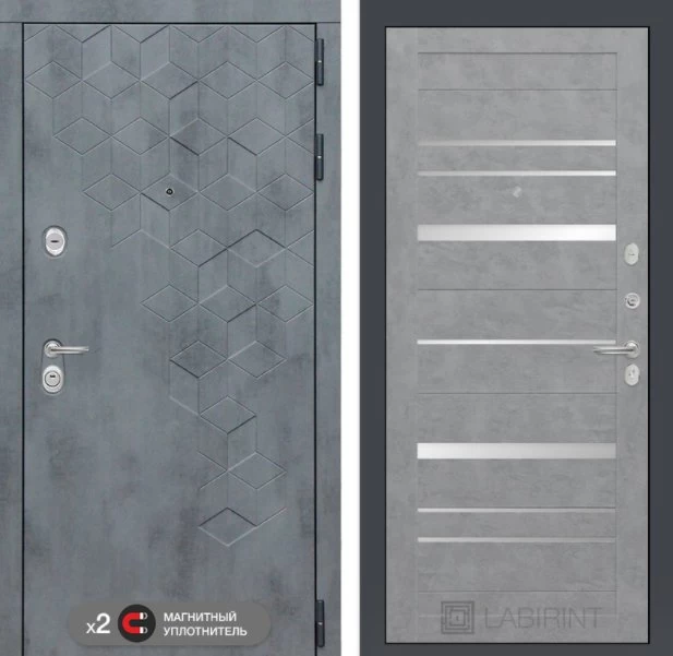 Дизайнерская входная Дверь Бетон класса Люкс с несколькими листами стали, звукоизоляцией и теплоизоляцией. Утепленный короб и полотно защитят от сквозняков и шумов. Модель не только надежная, комфортная, защищенная и высочайшего качества, но и очень красивая! Будет отлично сочетаться с интерьером дома, квартиры или офиса. Сейчас действует выгодное предложение по цене: 54 627 руб.