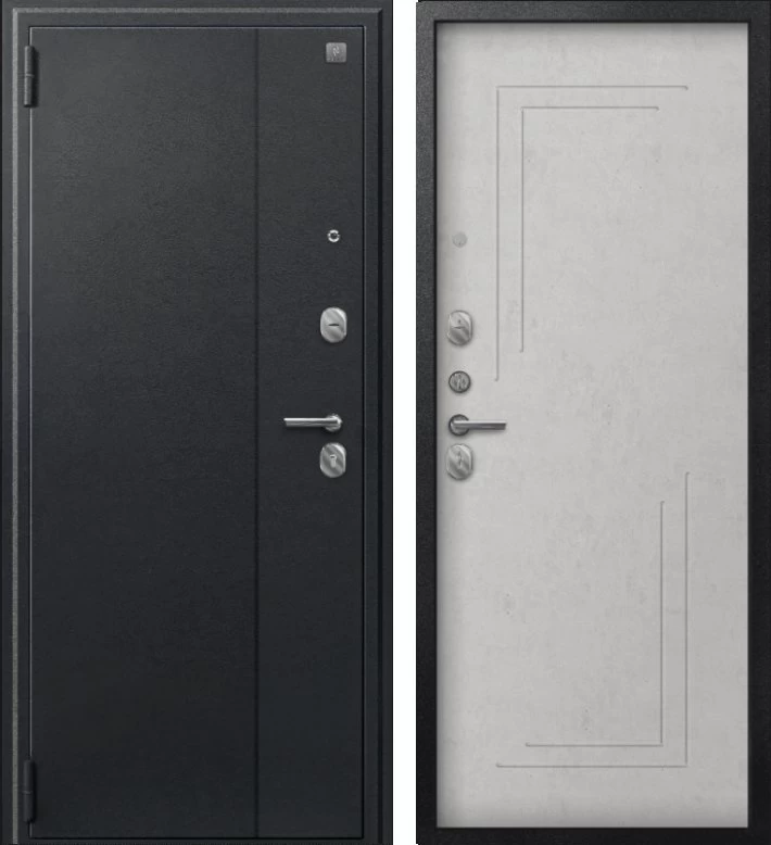 Надежная входная Дверь A-06 черный сатин - бетон светлый премиум класса по цене 30 357 руб. Большая толщина стали защитит от проникновения в ваш дом, квартиру или коттедж. Используется очень качественная фурнитура: замки, цилиндры, ручки, защелки. Покрытие и отделка двери изготовлено под внимательным контролем производителя. Дверь имеет долгий срок службы и гарантию.