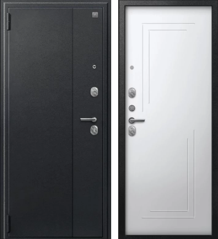 Надежная входная Дверь A-06 черный сатин - кашемир белый премиум класса по цене 30 357 руб. Большая толщина стали защитит от проникновения в ваш дом, квартиру или коттедж. Используется очень качественная фурнитура: замки, цилиндры, ручки, защелки. Покрытие и отделка двери изготовлено под внимательным контролем производителя. Дверь имеет долгий срок службы и гарантию.