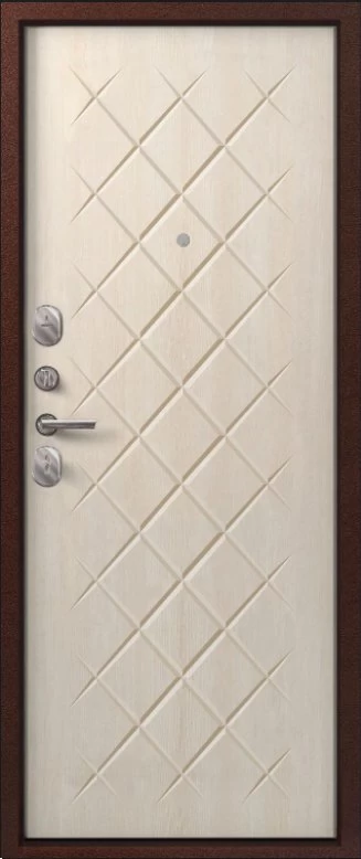 Надежная входная Дверь V-02 медь антик - седой дуб премиум класса по цене 37 377 руб. Большая толщина стали защитит от проникновения в ваш дом, квартиру или коттедж. Используется очень качественная фурнитура: замки, цилиндры, ручки, защелки. Покрытие и отделка двери изготовлено под внимательным контролем производителя. Дверь имеет долгий срок службы и гарантию.