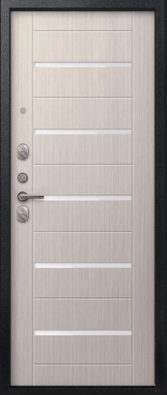 Надежная входная Дверь V-05 Черный муар - Лиственница светлая премиум класса по цене 42 527 руб. Большая толщина стали защитит от проникновения в ваш дом, квартиру или коттедж. Используется очень качественная фурнитура: замки, цилиндры, ручки, защелки. Покрытие и отделка двери изготовлено под внимательным контролем производителя. Дверь имеет долгий срок службы и гарантию.