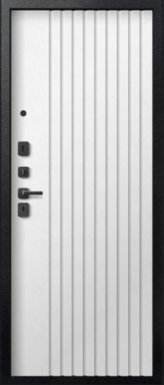 Надежная входная Дверь V-15 Черный муар + Бетон темный - Софт ясень белый премиум класса по цене 44 327 руб. Большая толщина стали защитит от проникновения в ваш дом, квартиру или коттедж. Используется очень качественная фурнитура: замки, цилиндры, ручки, защелки. Покрытие и отделка двери изготовлено под внимательным контролем производителя. Дверь имеет долгий срок службы и гарантию.